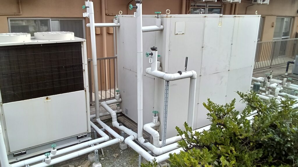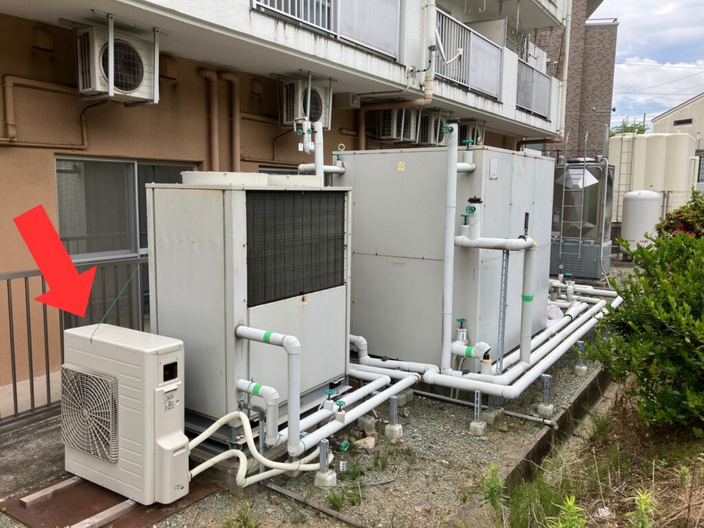 平成26年(2014年)に開設したグループホームにじいろ様では、開設当初から業務用エコキュートを購入しご使用していました。設置から12年が経過し、エコキュートのコンプレッサーが消耗し交換が必要な時期でした。